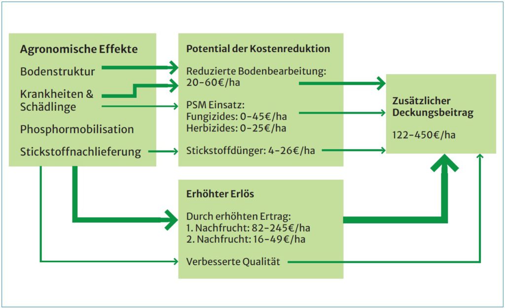 Abbildung: Agronomische Effekte und deren Einfluss auf den Deckungsbeitrag durch die Integration von Körnerleguminosen in Fruchtfolgen