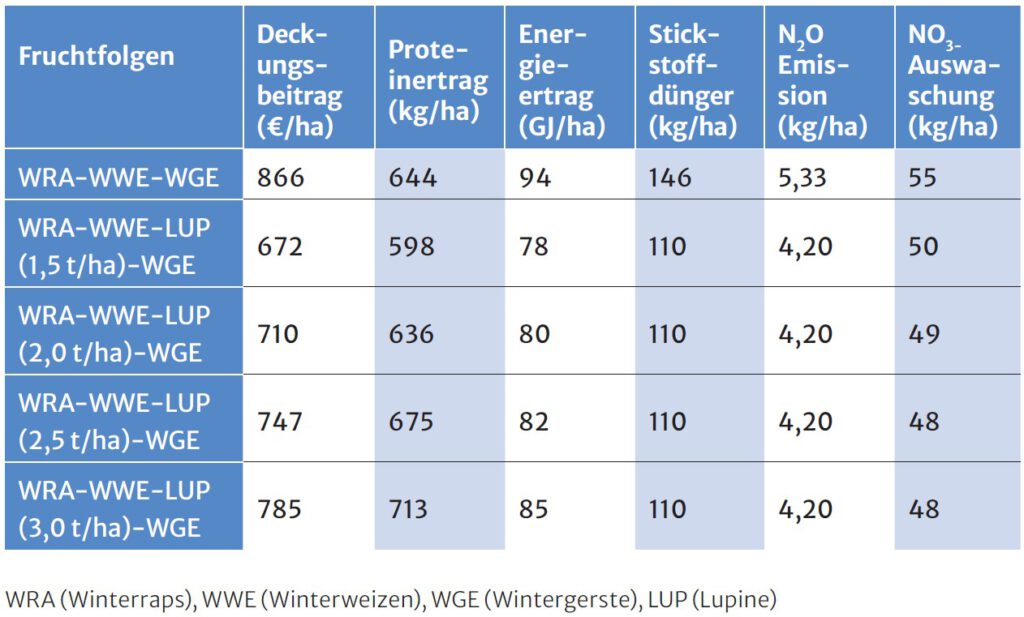Wirtschaftlichkeit und Umweltleistungen von Lupinen in Fruchtfolgen