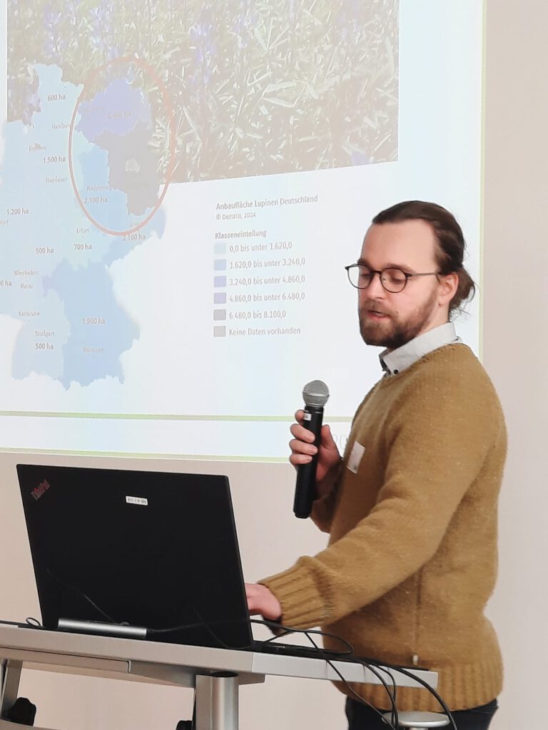 Einen internationalen Unternehmensblick brachte David Loichen von Wide Open Agriculture ein. In seiner Betriebsvorstellung wurden Strategien zur Entwicklung neuer Märkte, zur Positionierung von Lupinenproteinen sowie zur internationalen Wertschöpfung dargestellt.